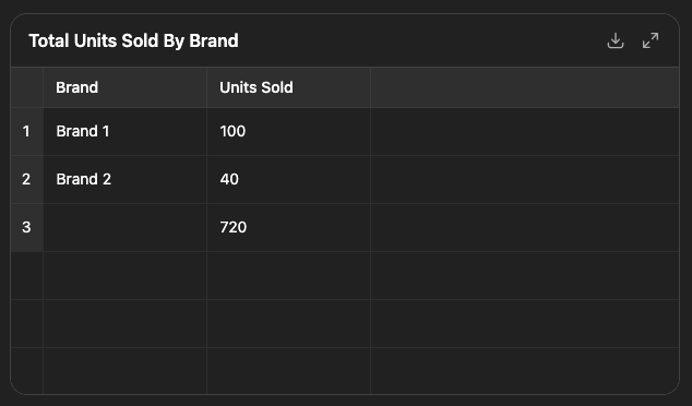 Prompt 2: What is the total units sold by brand?