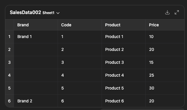 At first glance, this file looks fine. Clear brands, product codes, prices, and units sold. For humans, this is easy to read.